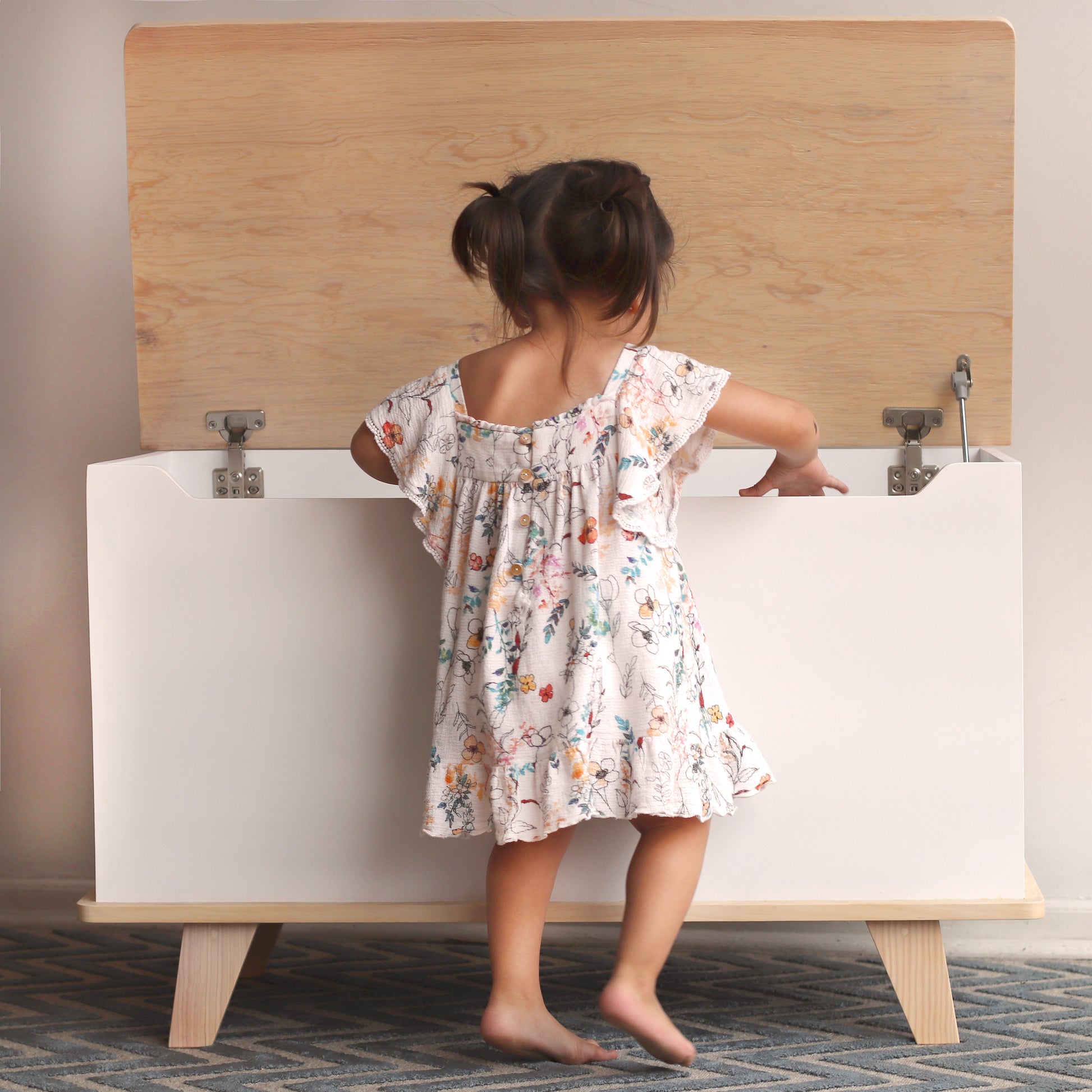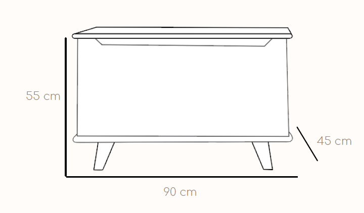 Baúl de MDF y pino el cual tiene una gran capacidad para guardar juguetes de cualquier tamaño.