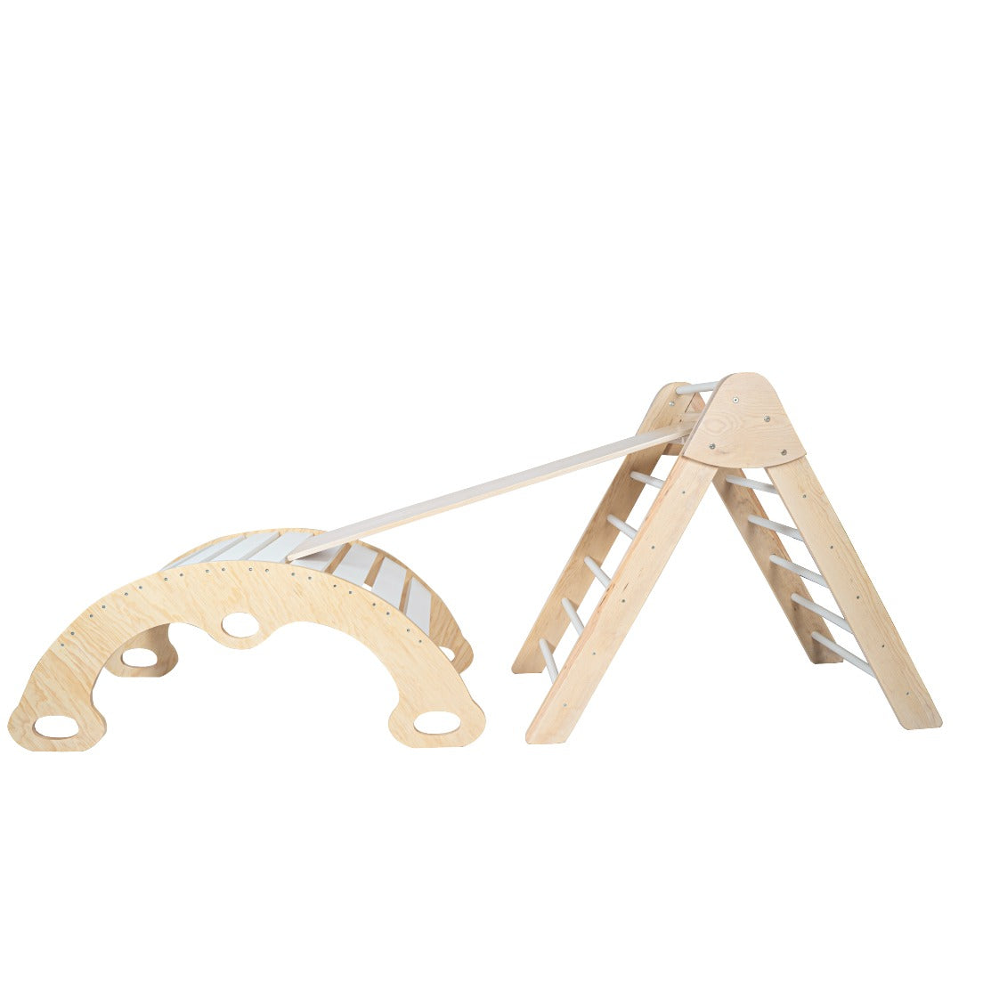 Set chico: Triángulo de 75 cms de alto, balancín de 85 cms de largo y tabla resbaladilla.